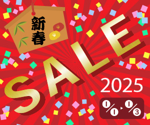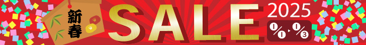 コンセプト:架空のネットショップ内に掲載されている新春セール告知をイメージしたバナー。赤の背景に金色の文字を用いた定番のインパクト要素に、紙吹雪と絵馬で新春の賑わいを加えました。